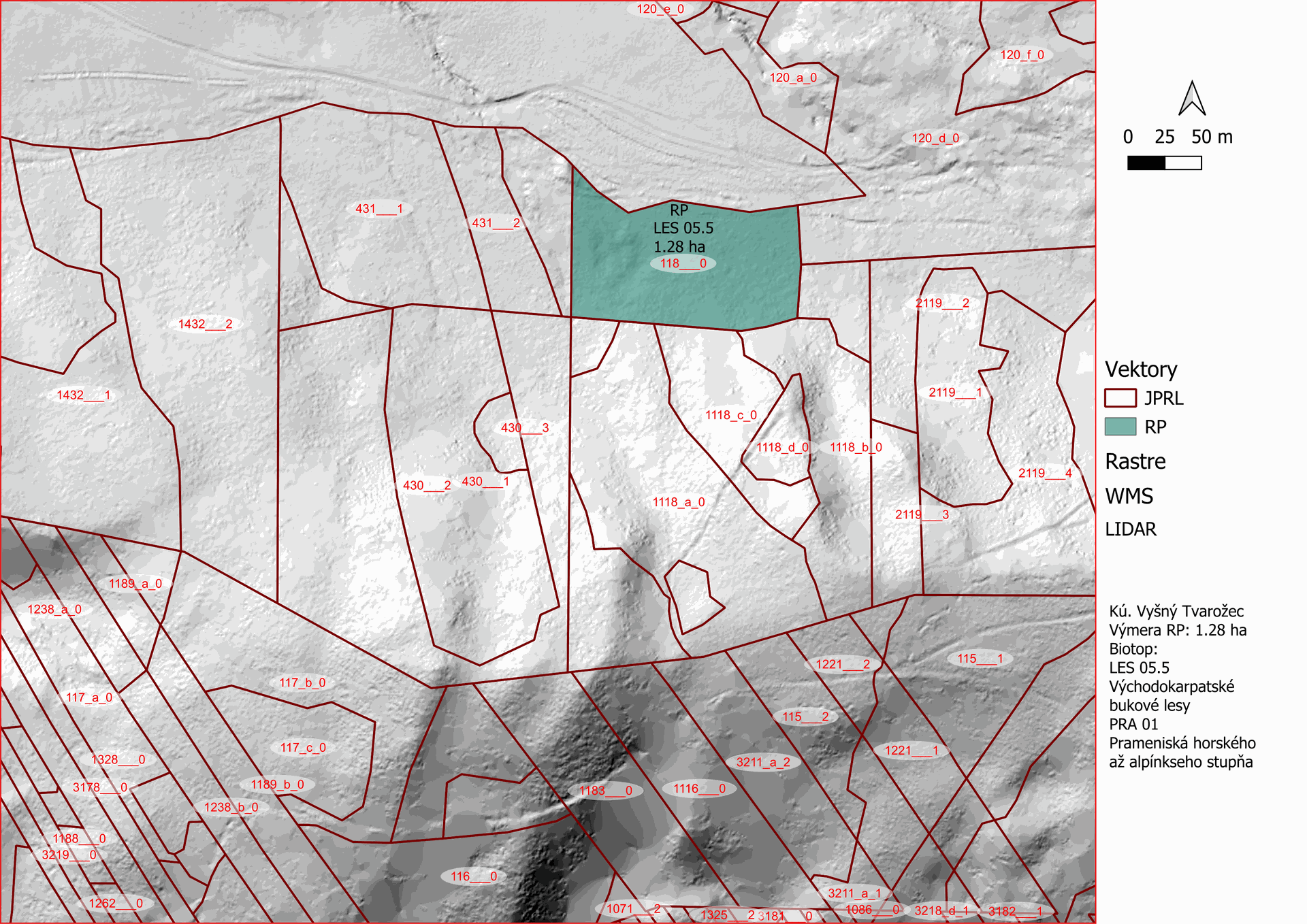 | Východokarpatské bukové lesy (LES05.5) x prameniská horského až alpínskeho stupňa ((PRA01) | 1 | 1.28 |